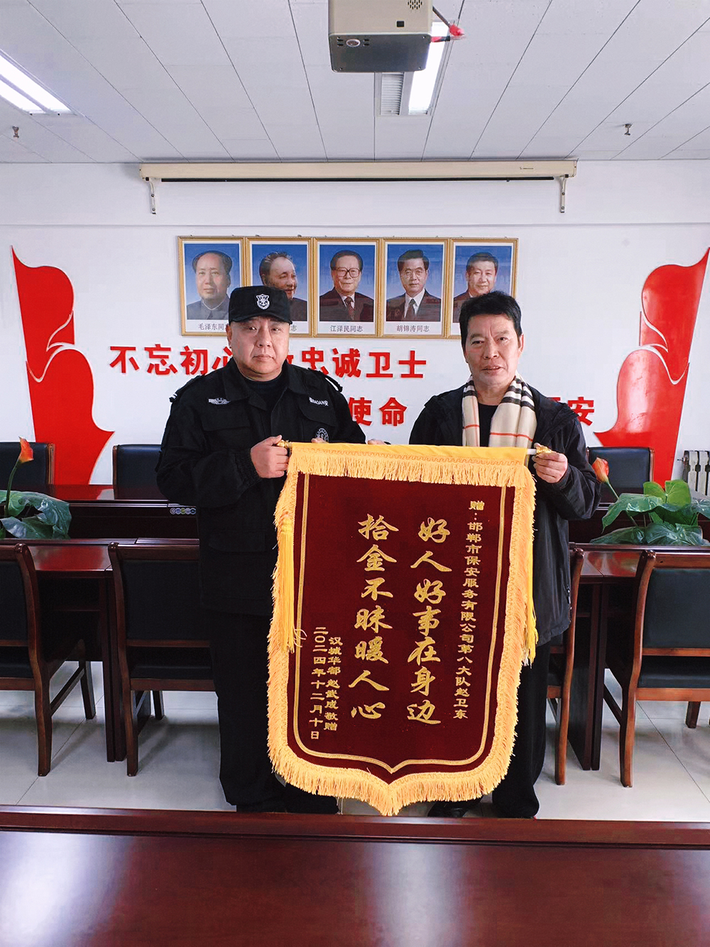事情發(fā)生在12月10日早晨八點(diǎn)10分左右,邯鄲市保安服務(wù)有限公司駐中國聯(lián)通邯鄲分公司二樞紐門崗保安班長趙衛(wèi)東在大院巡視時(shí),發(fā)現(xiàn)北消防通道上有一部華為手機(jī),在詢問周圍客戶后,無人認(rèn)領(lǐng),確認(rèn)是客戶遺失的。趙衛(wèi)東馬上上報(bào)公司,準(zhǔn)備調(diào)取監(jiān)控查找失主,這時(shí)有一位老同志到門崗尋問,經(jīng)核實(shí)確認(rèn)后,趙衛(wèi)東將手機(jī)歸還給失主,失主趙先生向趙衛(wèi)東表達(dá)誠摯的謝意,并稱雖然手機(jī)本身并不昂貴,但其中存儲的信息和資料卻至關(guān)重要。