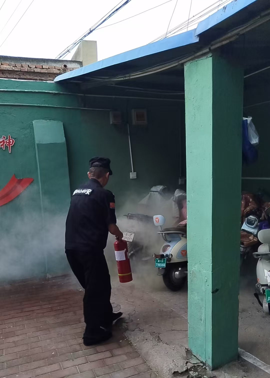 2025年5月23日下午15:00左右,邯山區(qū)三堤小學(xué)執(zhí)勤隊(duì)員周志勇、郭勇正常值班,發(fā)現(xiàn)門崗東側(cè)車棚冒出濃煙,兩人迅速跑到現(xiàn)場,原來是車棚里的一輛電動車不知因何原因突然起火,火勢迅速蔓延,濃煙滾滾,情況危急,就在這千鈞一發(fā)之際,我公司兩名保安員迅速反應(yīng),毫不猶豫地沖向著火的電動車,因?yàn)樗麄兩钪?,每一秒的耽擱都可能帶來無法挽回的損失。郭勇迅速拿起保安室里的滅火器,沖向起火的電動車,周志勇馬上切斷了電源,經(jīng)過兩人的分工合作,火勢終于得到了有效的控制,當(dāng)火焰被熄滅時(shí),兩人都松了一口氣,臉上露出了疲憊但滿足的笑容。